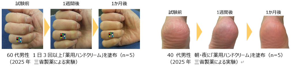 また、当社の実験では、手だけでなく、かかとの肌荒れを防ぐ傾向も見られました。